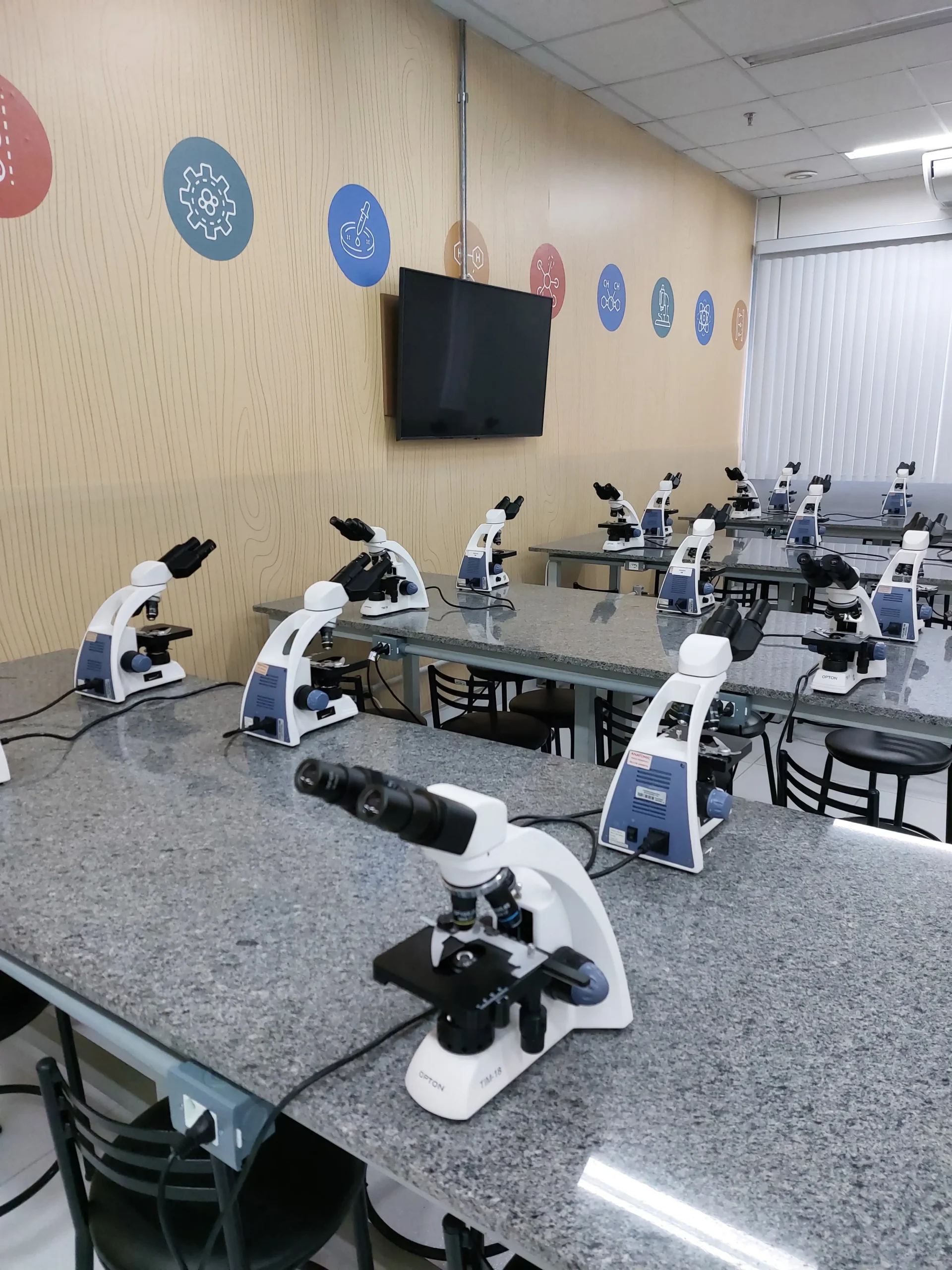 Laboratórios de análises clínicas, microbiologia, anatomia e microscopia;