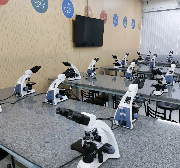 A infraestrutura do curso de Biomedicina da Faculdade Serra Dourada inclui +15 laboratórios equipados para análises clínicas e microbiologia, +40 salas modernas e 2 bibliotecas especializadas. O ambiente prático acelera o aprendizado no Vale do Paraíba.
