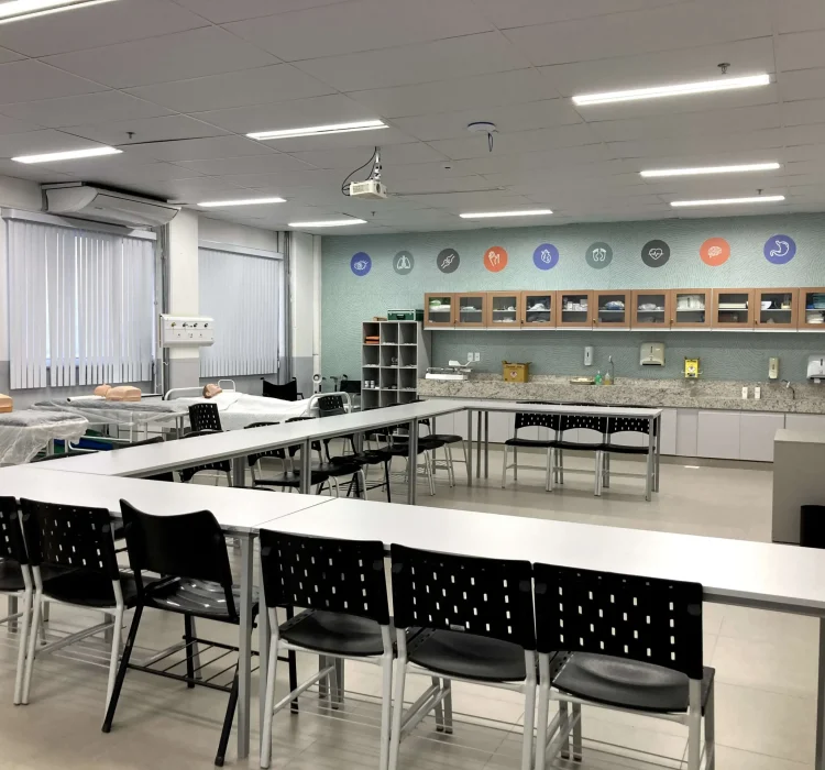 Vivência em laboratórios modernos e bem equipados, garantindo experiência real e preparo para o mercado na área da saúde.